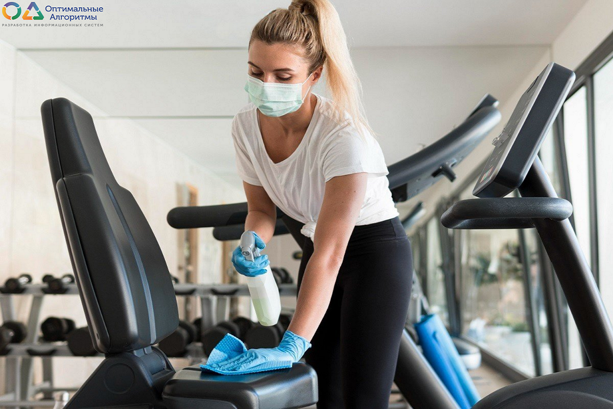 Основная часть клининга тренажерных залов выполняется после закрытия центра для предотвращения помех посетителям. Однако тренажеры и спортивный инвентарь нуждаются в многократной очистке в течение дня из-за постоянного контакта с большим количеством людей.