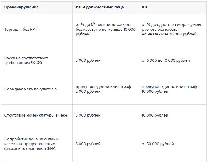 Отсутствие в кассовых чеках новых реквизитов повлечёт наложение следующих штрафов:
